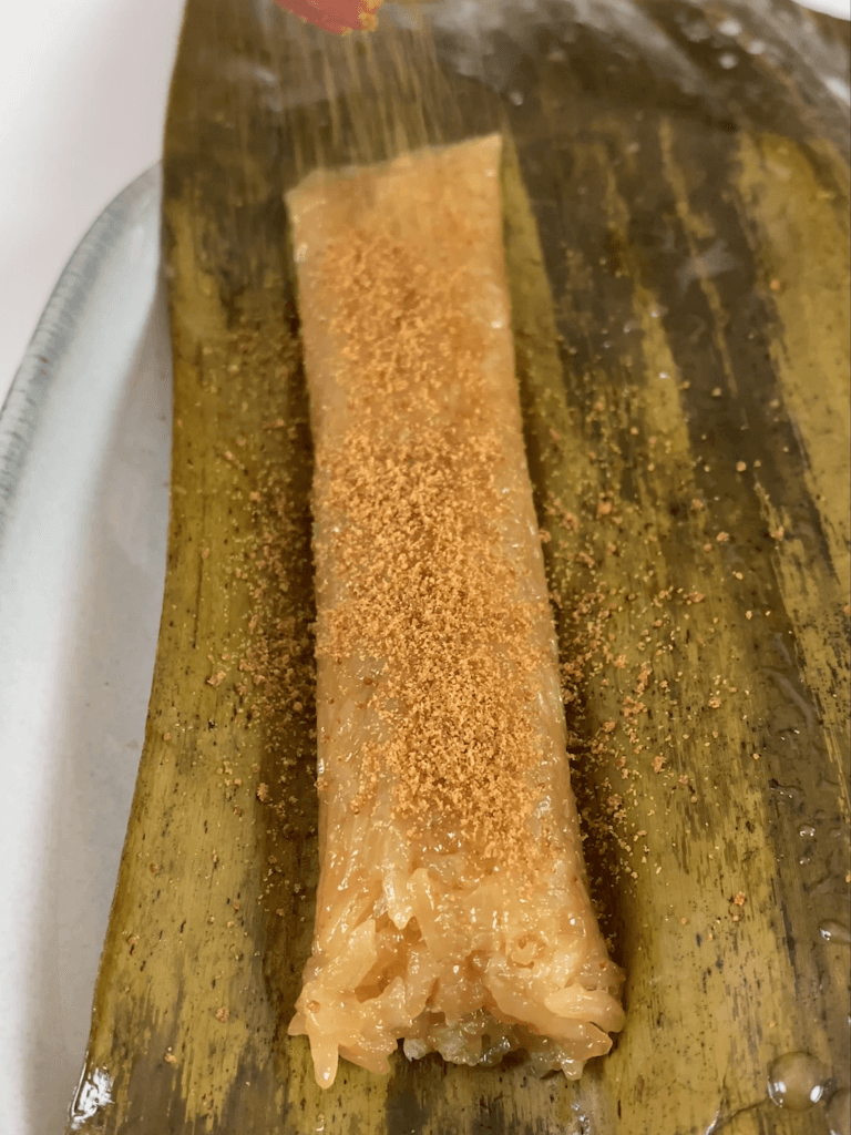 The program pamphlet is Inspired by the practice of wrapping food with banana leaves for cooking. The pamphlet folds to imitate the way it wraps around Suman Malagkit, a sticky rice cake.