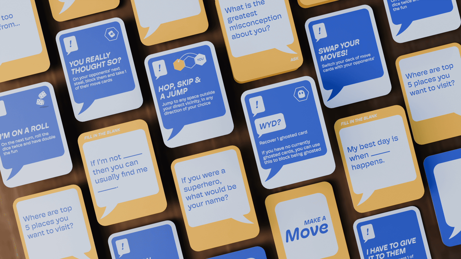 Players are challenged to collect the most Move Cards–which are composed of questions from Bumble's Question Game–before they reach the end of the board. They can collect Chance Cards to shake it up as they race to get to know their match best!